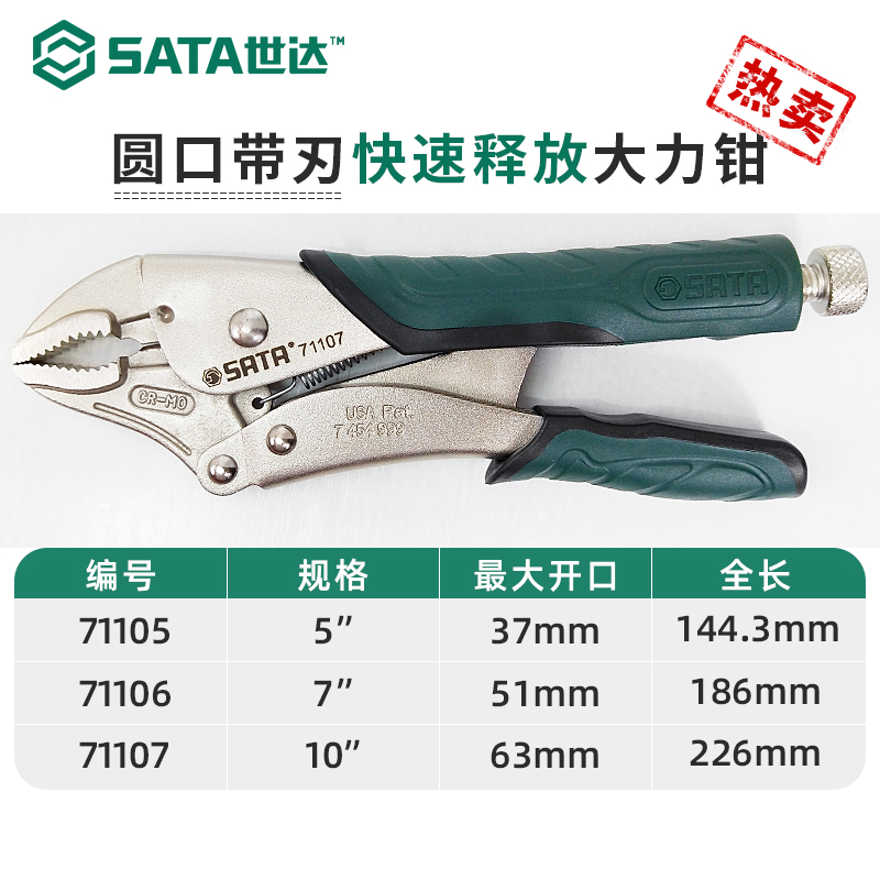 71101 Round mouth with edge 5 71102 Round mouth with edge 7 inch 71103 Round mouth with edge 10 inch (commonly used) 71105 Round mouth with edge quick release 5 inches 71106 Round mouth with edge quick release 7 71107 Round mouth with edge quick release 10 inches 71202 Straight mouth 71203 Straight mouth 10 inch 71206 Straight mouth quick release 10 71301 Sharp mouth with edge 6 71302 Pointed mouth with edge 9 inches 71305 Sharp mouth with edge Quick release 6 71306 Sharp nozzle with edge quick release 9 inches 71002 Curved mouth quick release 10 inches 71001 Curved mouth quick release 7 7 71205 Straight mouth quick release 7 71401 Welding with 9 inches 71501 tin force pliers 8 inches 71601 C type force pliers 11 inches 71701 chain type force pliers 19 inches