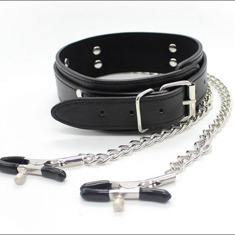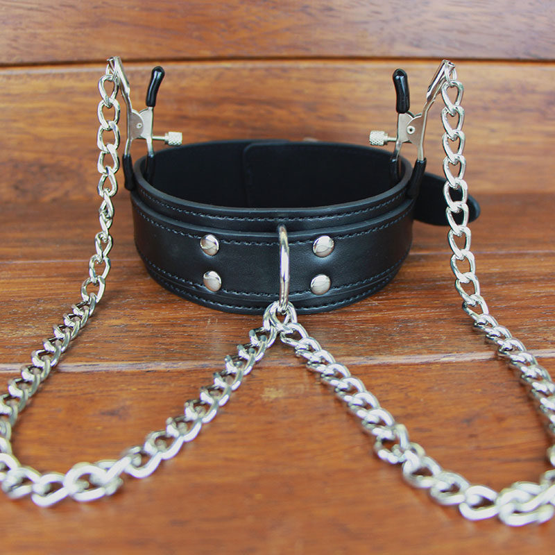 Breast clip collar alternative neck cover male with dog slave neck sleeve nipple clip bundle bound bondage sm sex adult sex products