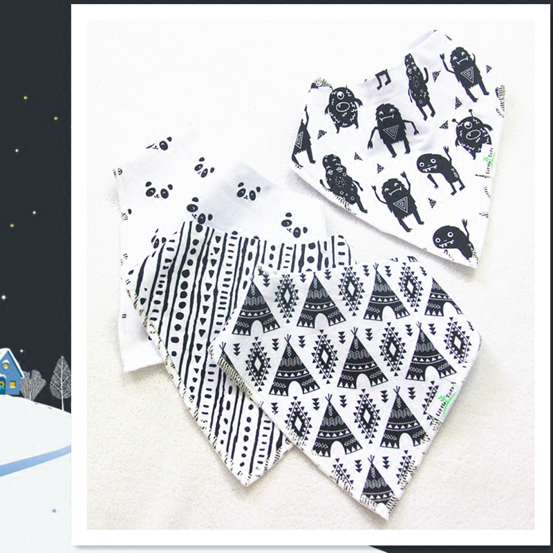 Black and white wind baby saliva towel bib newborn saliva towel Pure cotton anti-vomiting milk baby triangle towel buckle thickened