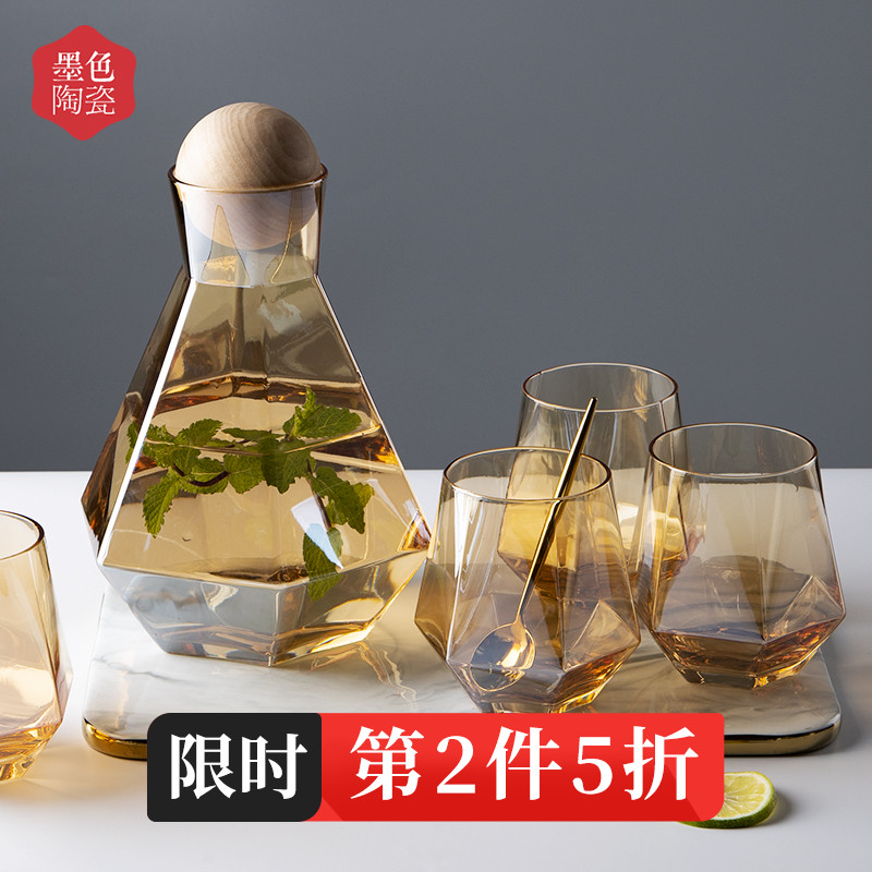 Hexagon glass-Amber hexagonal jug (1 pot 4 cups) light gray hexagonal glass-smoke gray hexagon (1 pot 4 cups) Amber-one pot four cups cigarette Gray-one pot four cups small light