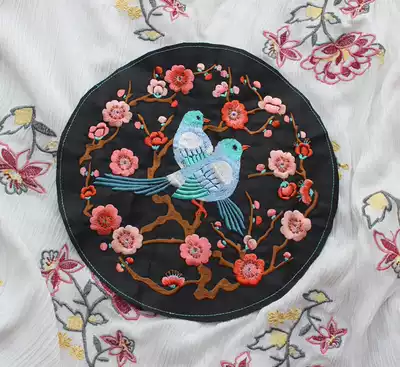 Happy eyebrows Plum blossom Magpie bird embroidery embroidery piece 20cm Chinese style round embroidery patch