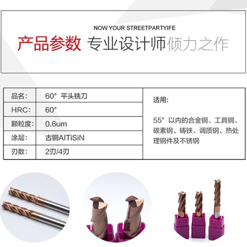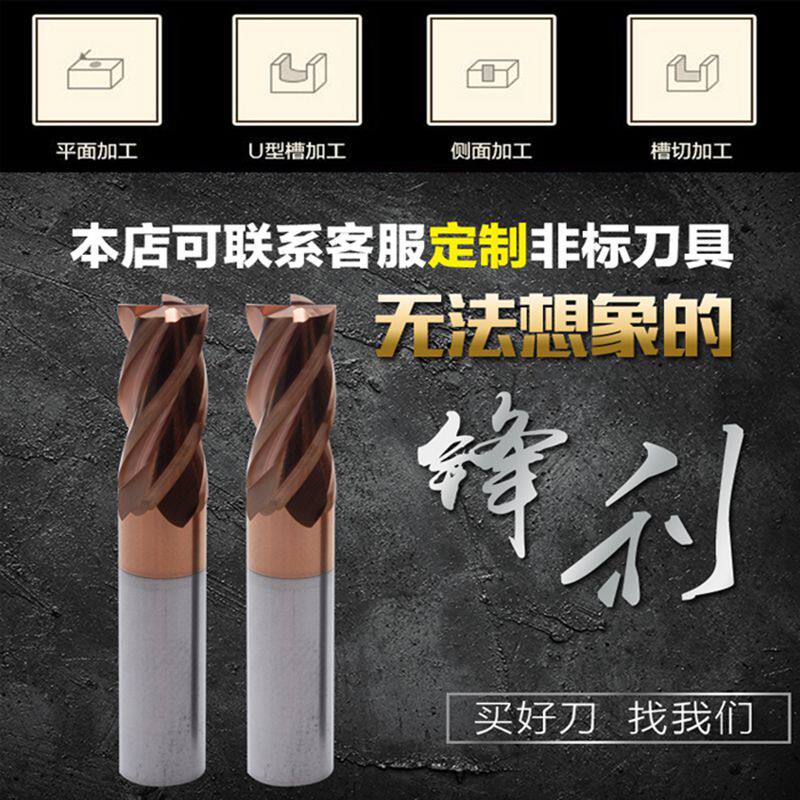 60-degree 4-edged coated alloy tungsten steel stainless steel flat head end mill CNC 3 5 7 910 12 14 16 18
