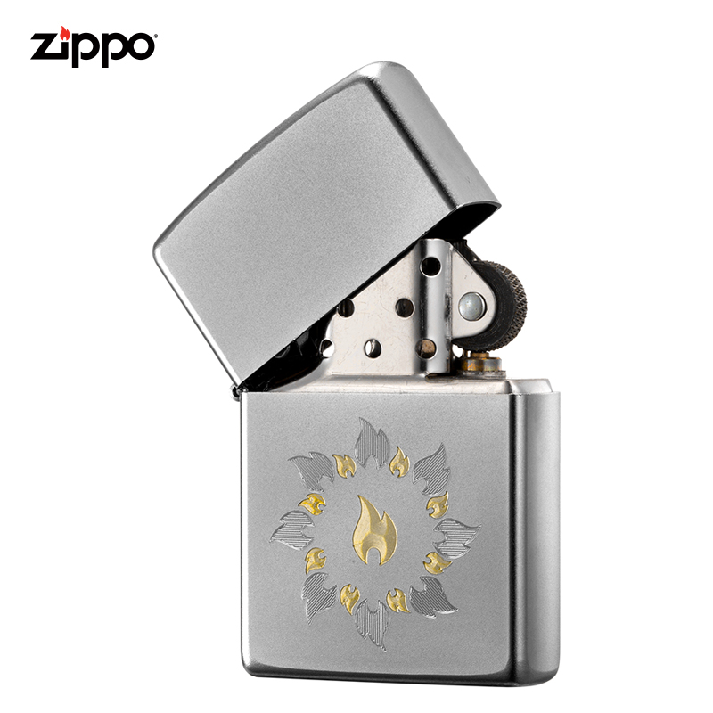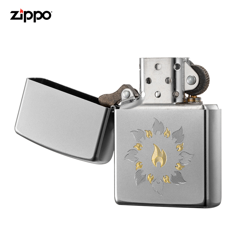 Zippo American original genuine imported treasure satin yarn chrome-plated gold and silver fire circle gift for boyfriend