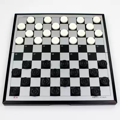 Black and White 100 grid International Checkers (standard) Black and White 100 international checkers per color 5 pieces Black and White 100 square International Checkers per color 10 pieces Red and White 100 square International Checkers (
