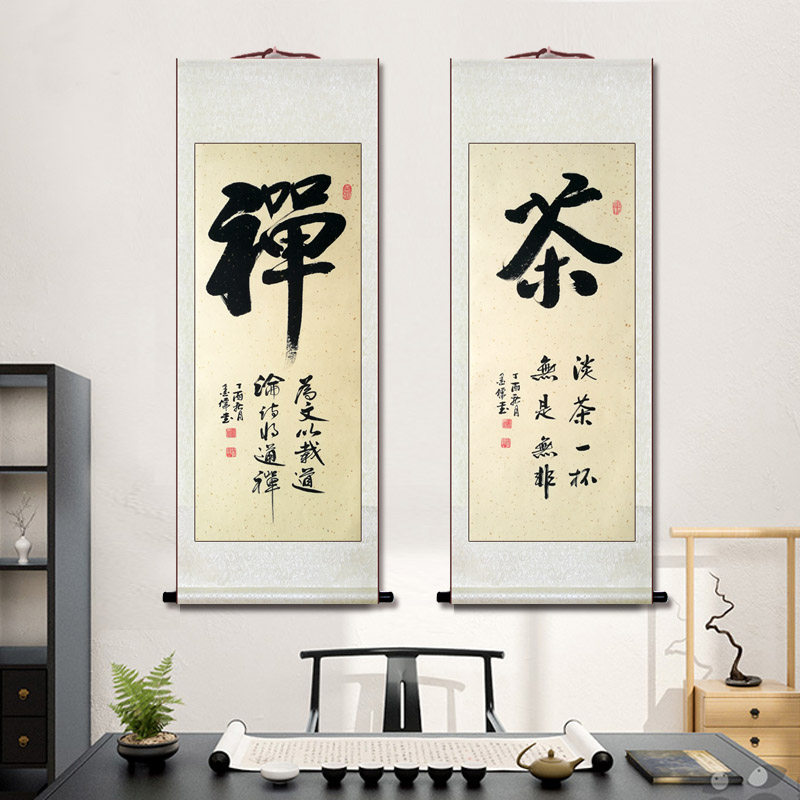 And word hanging painting Calligraphy works Calligraphy and painting Authentic handwriting Brush calligraphy and painting Mounting Calligraphy and painting scroll Zen tea decoration