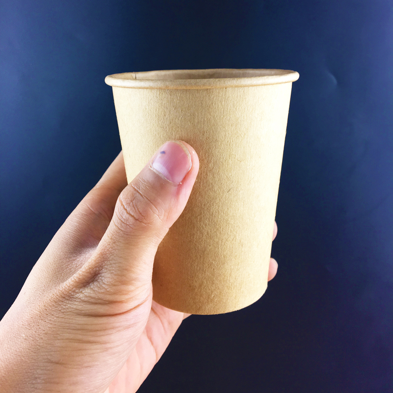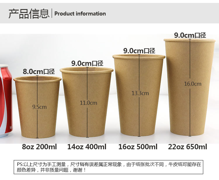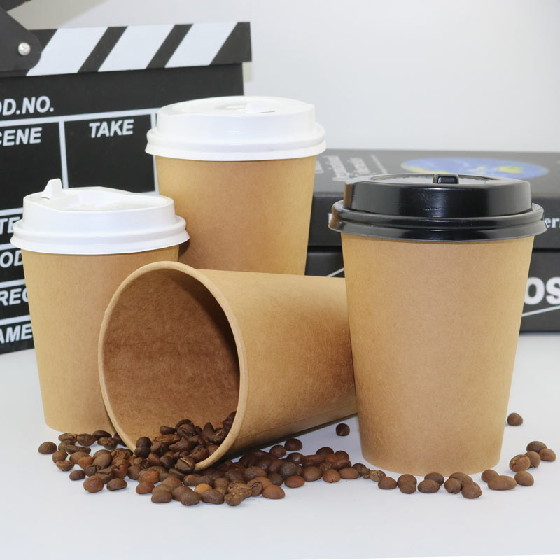 Disposable kraft paper cup thickened high-grade kraft color coffee cup Milk tea cup Take-away packing cup 50 with lid
