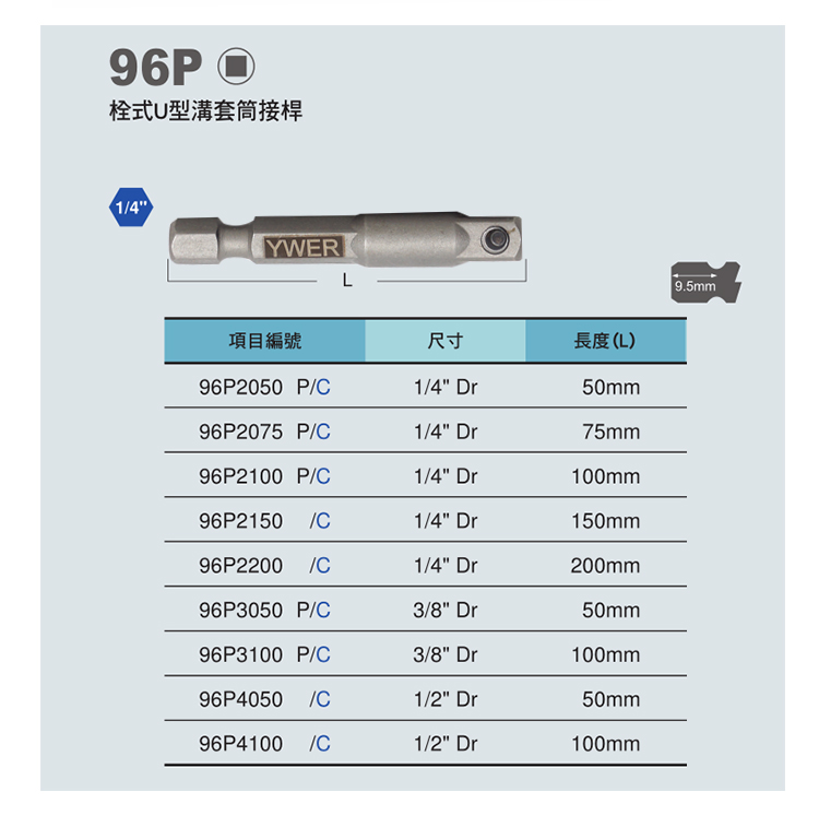1 4 * 50mm (96P2050) 1 4 * 75mm (96P2075) 1 4 * 100mm (96P2100) 1 4 * 150m