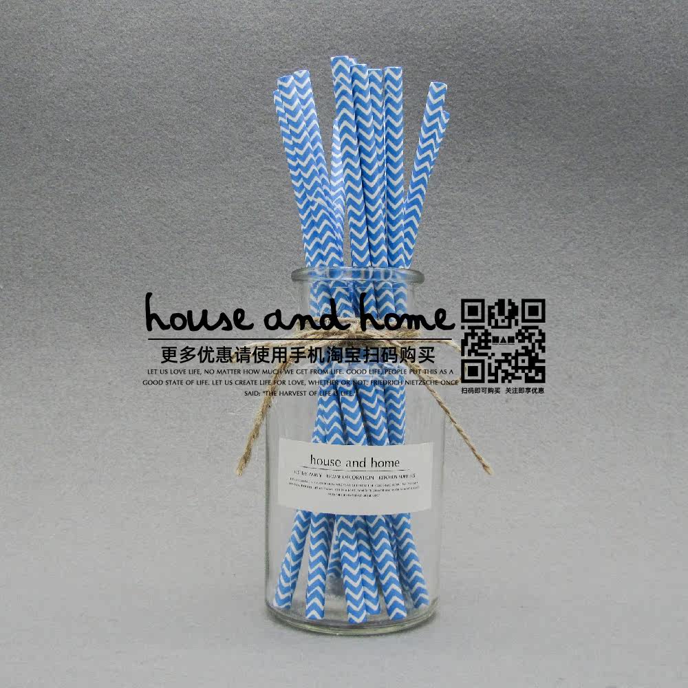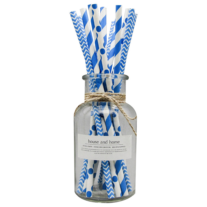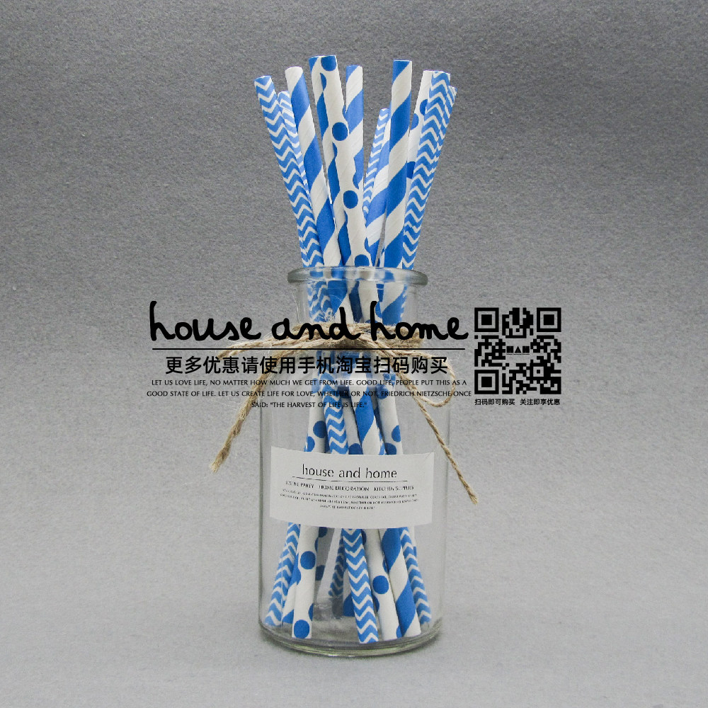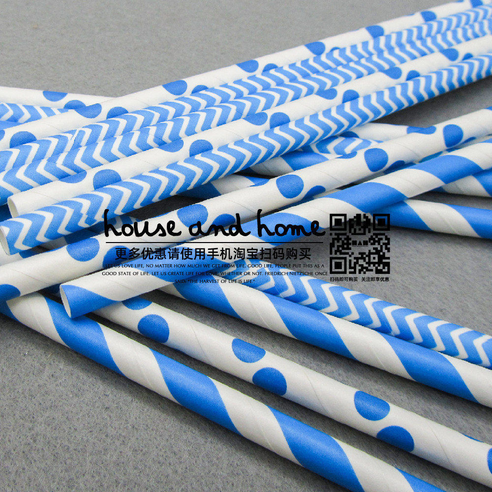 Eco-friendly Decorative Paper Straws Blue Dots Striped Creative Wedding Props Banquet Party Children DIY 200