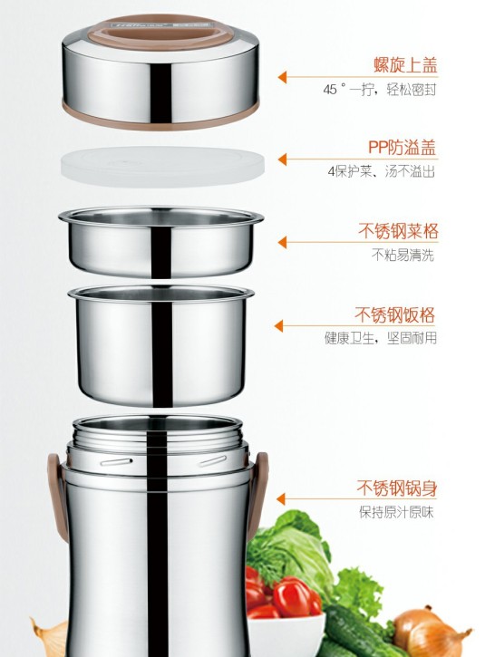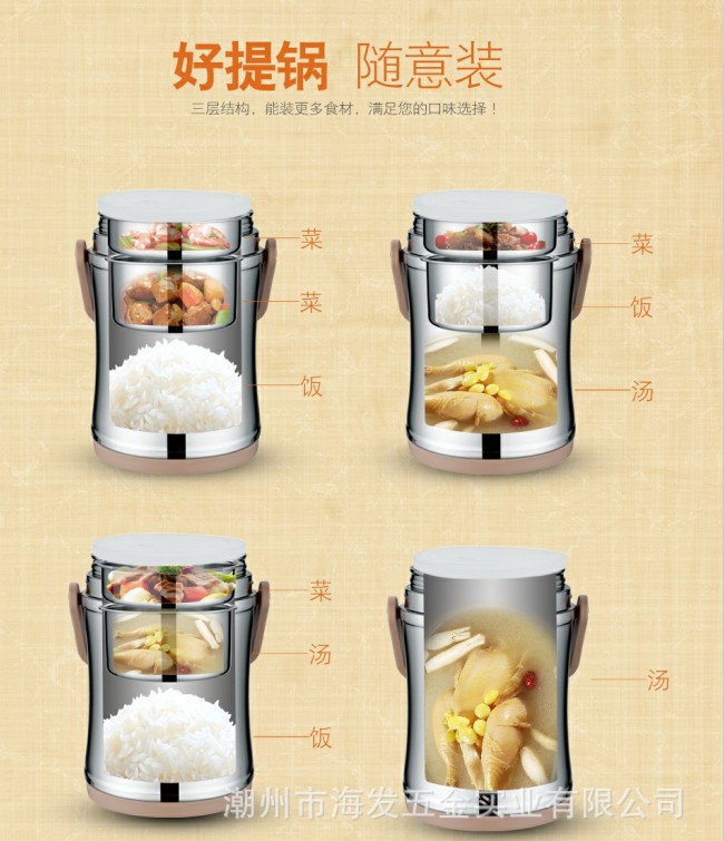 Sea Hair 304 Stainless Steel Extra-long Insulation Lunch Box 3 Layers Adults Lunch Box Multilayer Vacuum Portable Insulated Barrel Triple