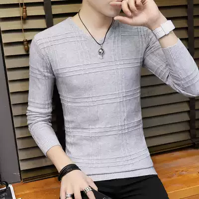 2020 new men's autumn and winter V-neck sweater personality Korean version of slim-fit bottoming sweater trend warm sanitary clothes