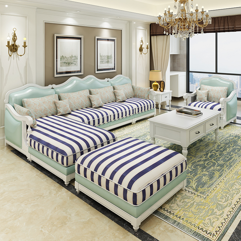 American solid wood sofa Mediterranean fabric sofa small family type real leather sofa minimalist casual Eurostyle corner sofa