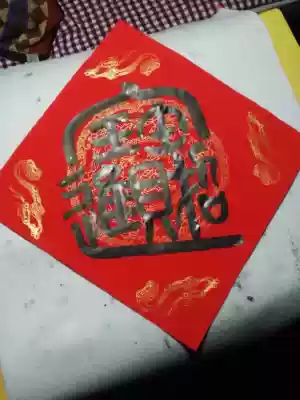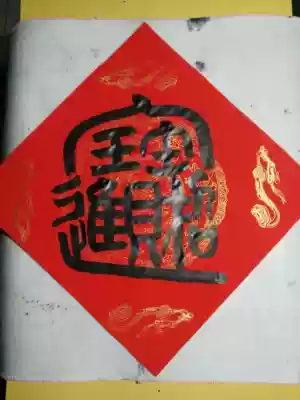 Handwritten seal script combination character door width Doufang Jinbao Wuyunshan people write couplet calligraphy Wannianhong Xuan paper