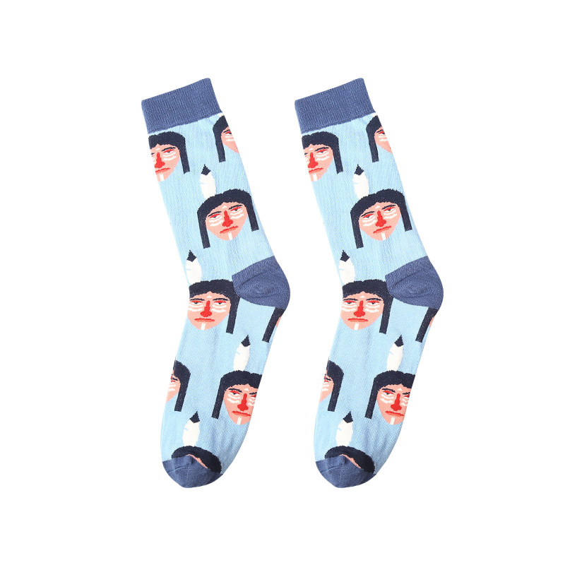 Broken cat Street graffiti funny socks Korean men and women couples in tube socks personality cute cartoon college style