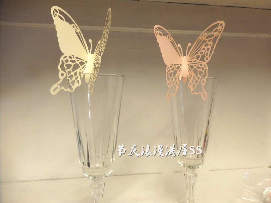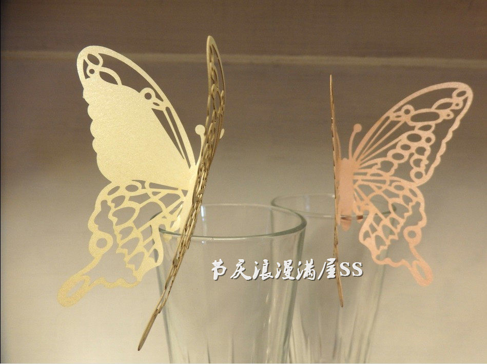 Wine glasses seat card birthday party paper card hollow butterfly Card Wedding name plate decoration 50