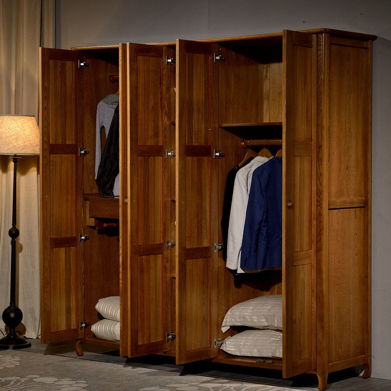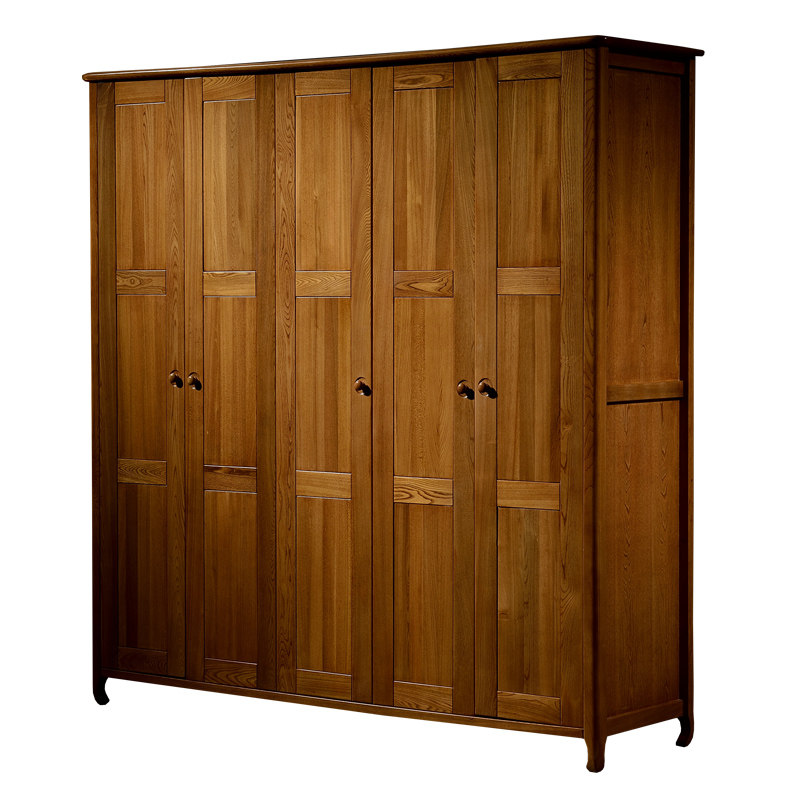 Golden silk sandalwood five-door wardrobe solid wood wardrobe Nordic simple modern pure solid wood 5-door four-door wardrobe Chinese style