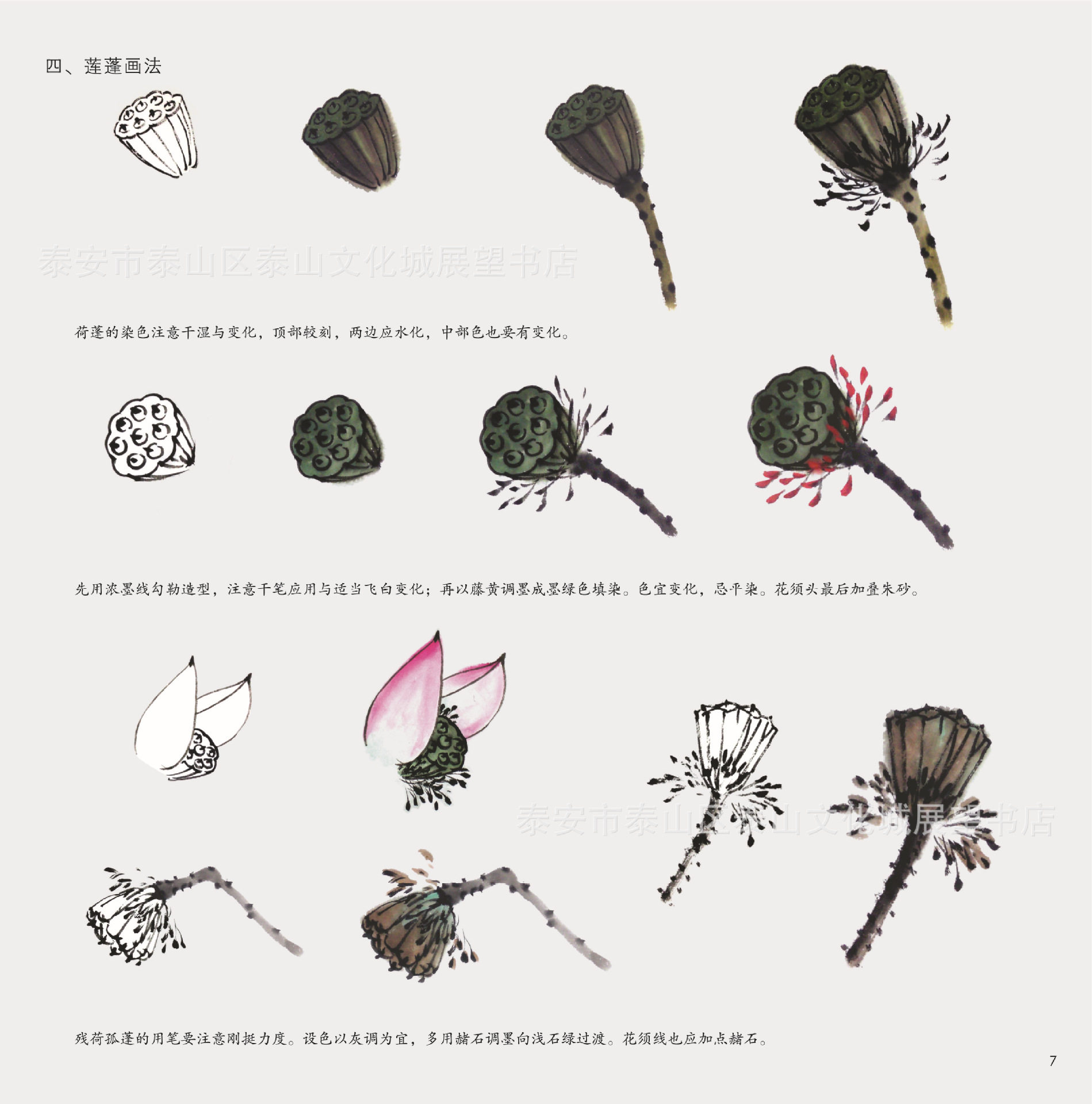 School painting Baodian lotus flower Chinese painting technical law Wang Zhongren wrote a graphic collection of the flower painting method