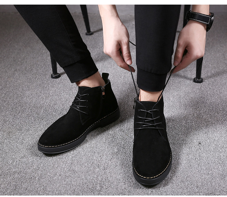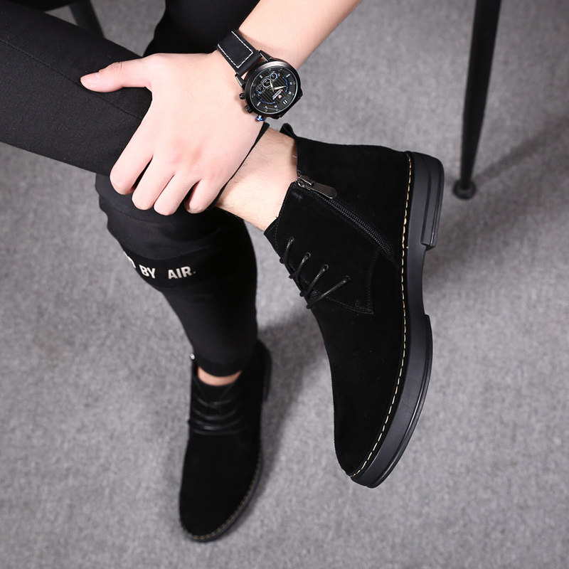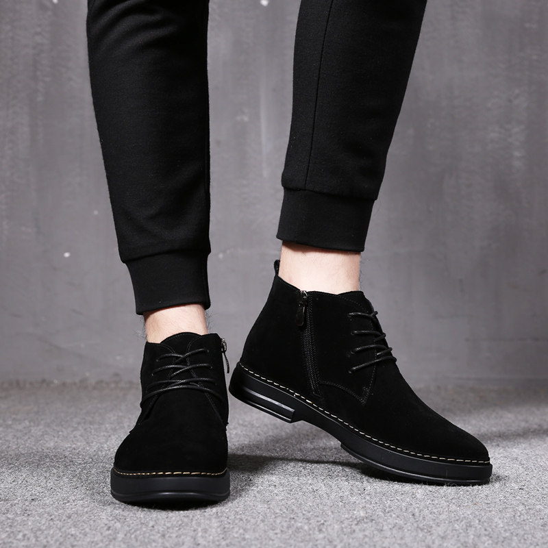Autumn and winter men's Martin middle tube snow boots fur high tube frosted men's shoes tide plus velvet warm cotton shoes men