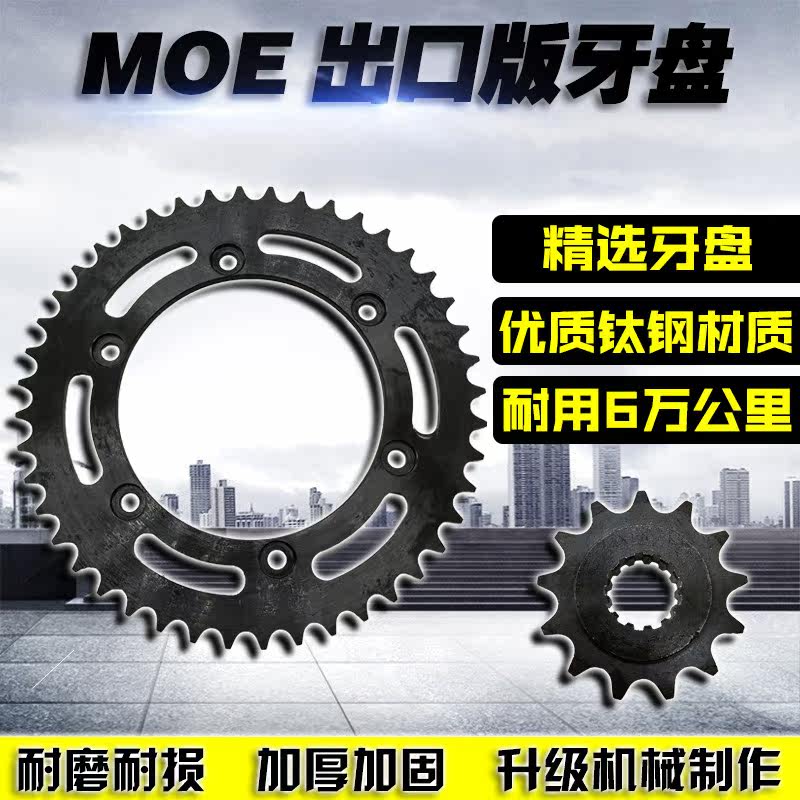 MOE export version titanium steel version of the chain three-piece set MOE export version Titanium steel version of the chain MOE export version of the size of the large sprocket MOE export version of the large sprocket MOE export version of the small sprocket ECE country
