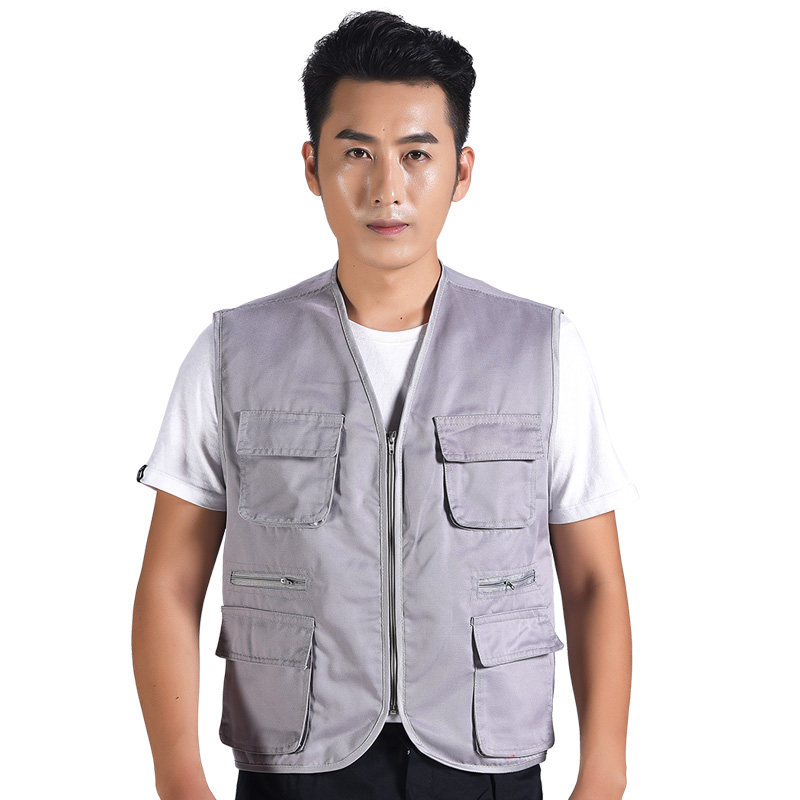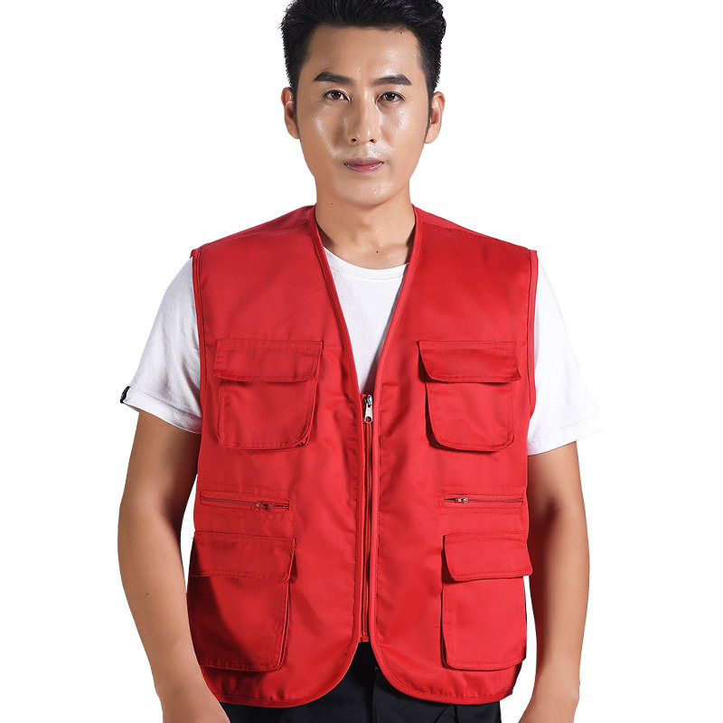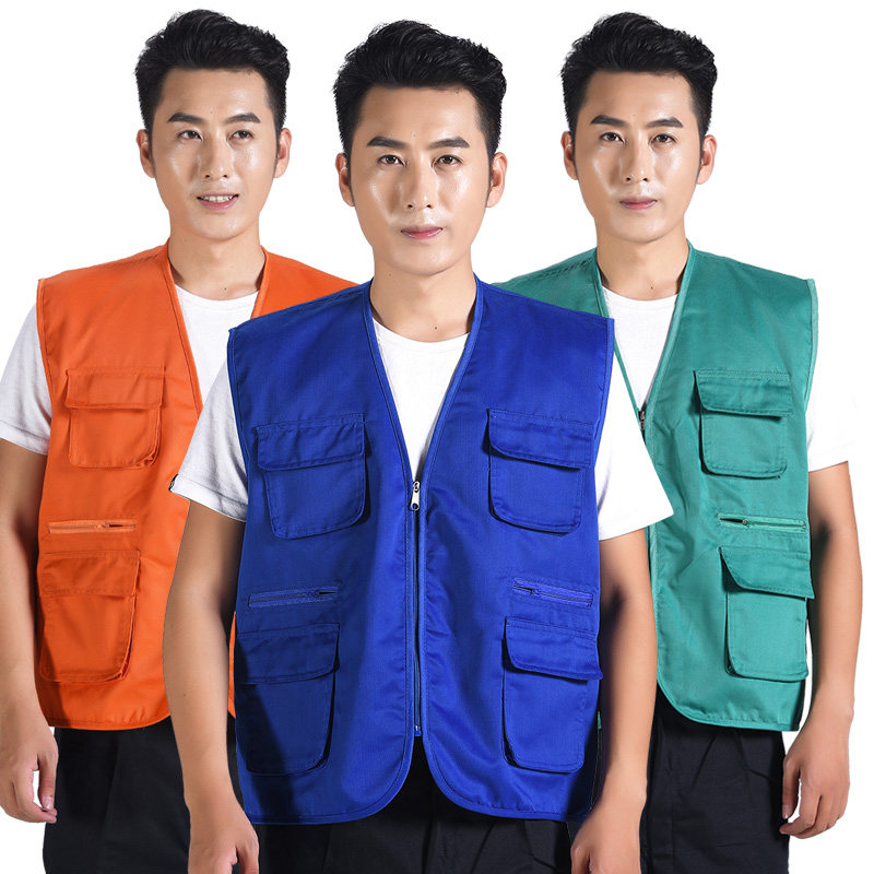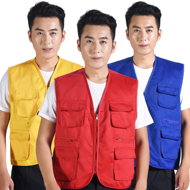 Tour guide vest vest advertising custom printed logo zipper multi-pocket supermarket activities volunteer vest overalls