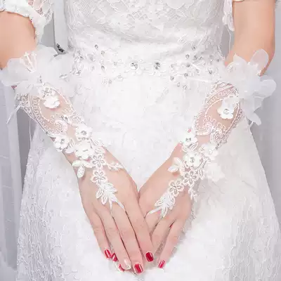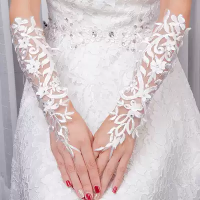 New wedding gloves Korean elegant lace thin section hook finger bride wedding dress gloves long wedding accessories