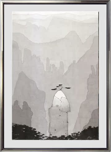 Modern decorative Chinese painting ink pattern smudged landscape soft decoration living room fairyland mountains black and white watercolor master