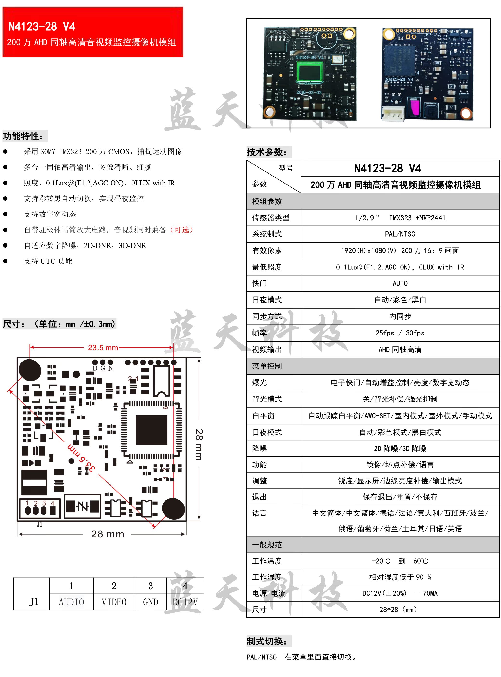 2 million AHD coaxial high-definition monitor high-definition module 2441 Sony 323 Low illuminance night vision 28MM board