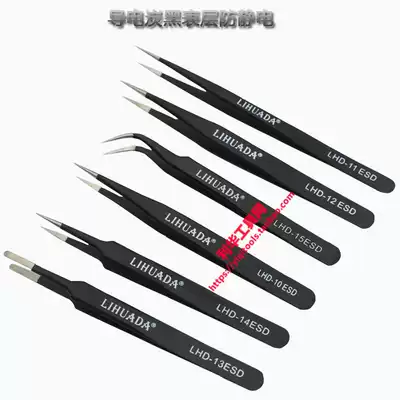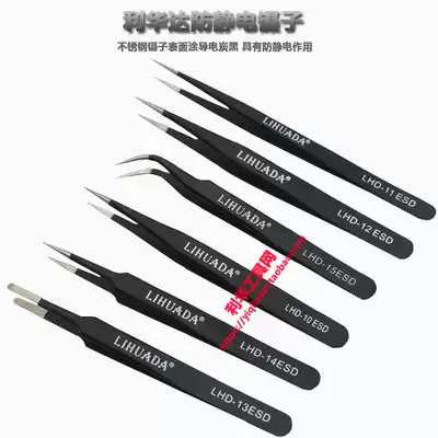 LIHUADA-10ESD anti-static tweezers anti-static pointed black stainless steel tweezers LHD-11ESD
