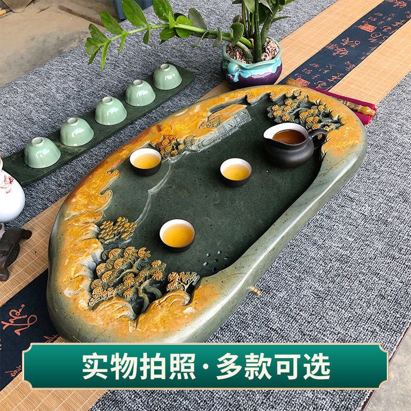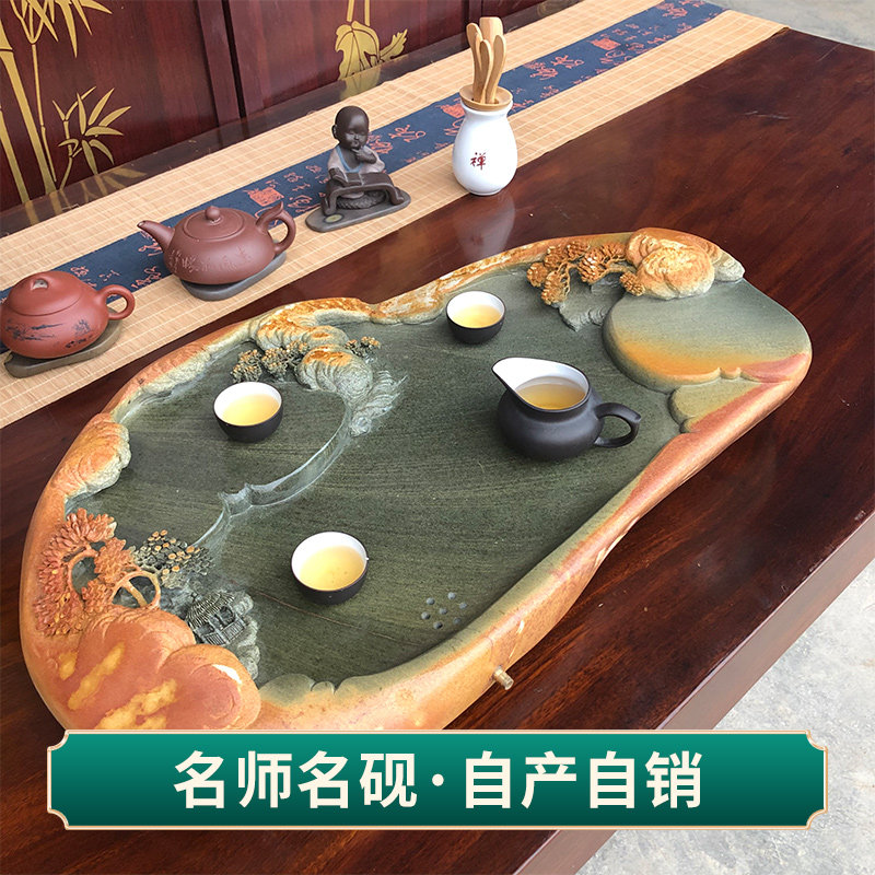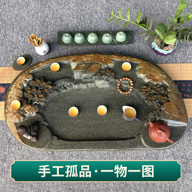 End-ink stone tea tray Chinese style retro wind power fu tea with tea darling handmade green end drainage type tea sea landscape beautiful scenery