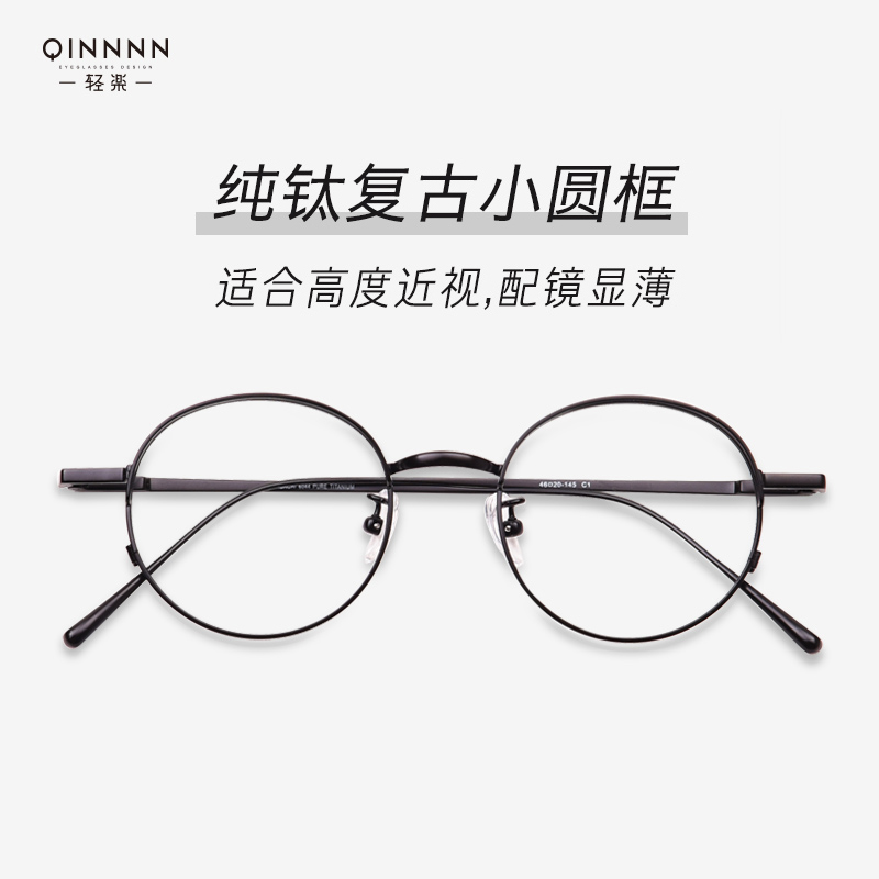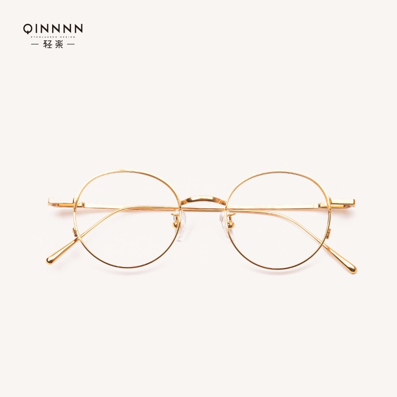 Pure titanium round frame glasses frame men and women Small face myopia high myopia frame Gold frame Female myopia can be matched
