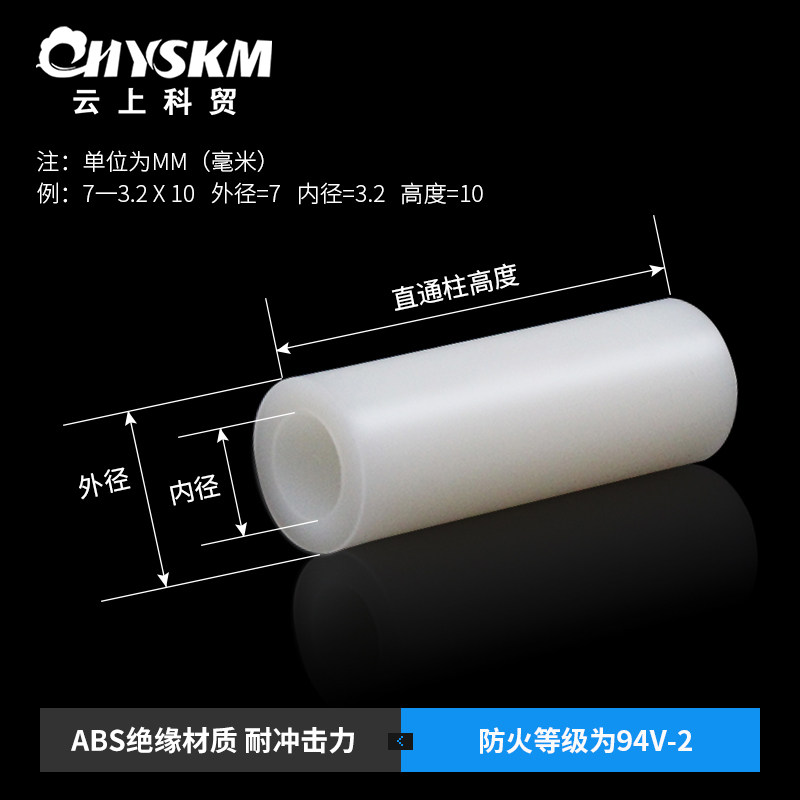 Straight-through M6 isolation column pad high flat head support column double-through ABS nylon plastic gasket round hole casing column gasket