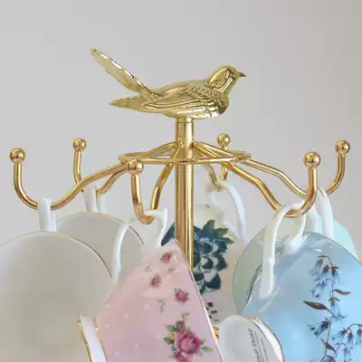 Creative gold-plated bird cup holder European-style wrought iron coffee cup holder Water cup mug Teapot tea set storage shelf