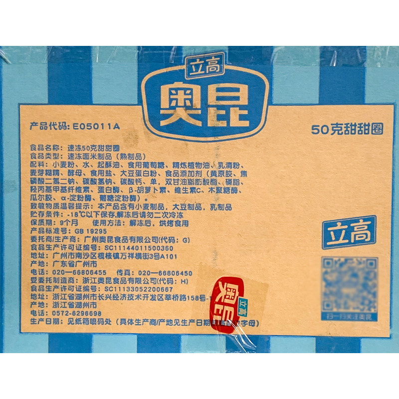 Okun Frozen Original Taste Doughnut 50g * 15 * 5 Bag Semi-finished Bread Ring Baking Gags Strong Multi-Take Heat