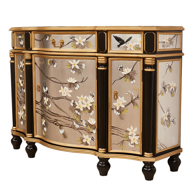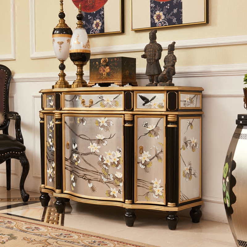 New Chinese-style solid wood semi-circle living room dining cabinet storage cabinet tea cabinet neo-classical living room cabinet aisle entrance counter