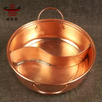 Pure copper binaural household hotel special copper hot pot Mandarin duck hot pot induction cooker hot pot thickened soup pot