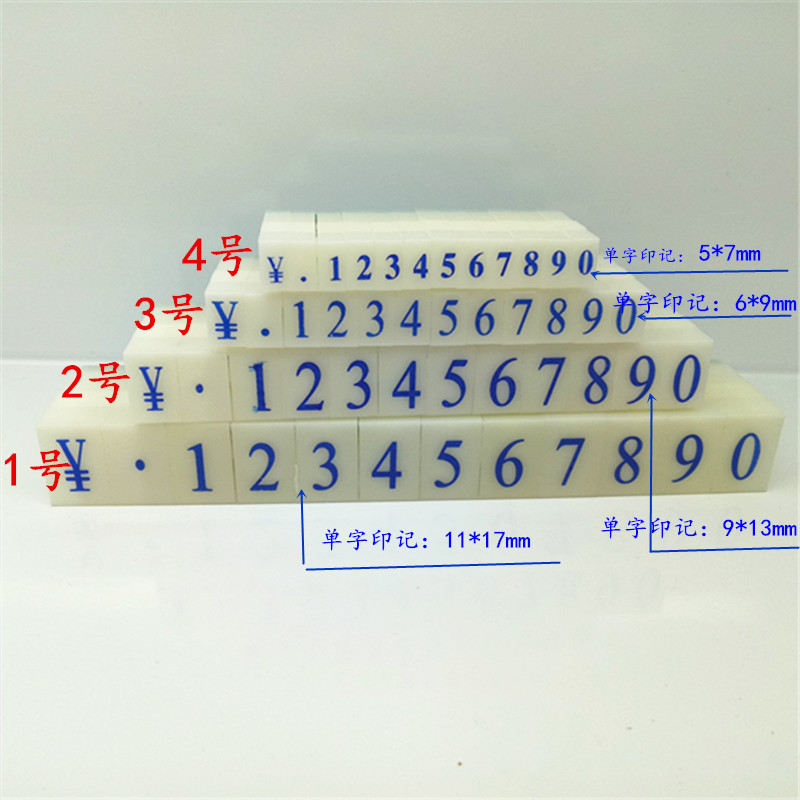 No 4 (word height and width 7*5mm)A set of No 3 (word height and width 9*6mm)A set of No 2 (word height and width 13*9mm)A set of No 1 (word height and width 17*11mm) A set of 6