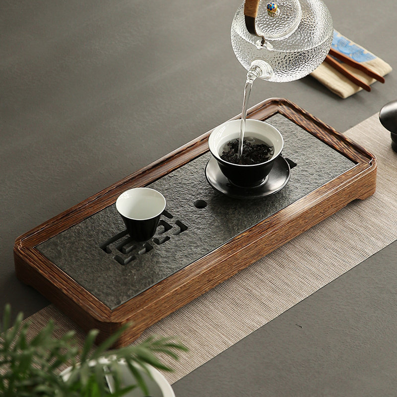 Big porcelain hall chicken wing wood tea tray office water storage type Wujin stone tea table household drainage type whole solid wood tea sea