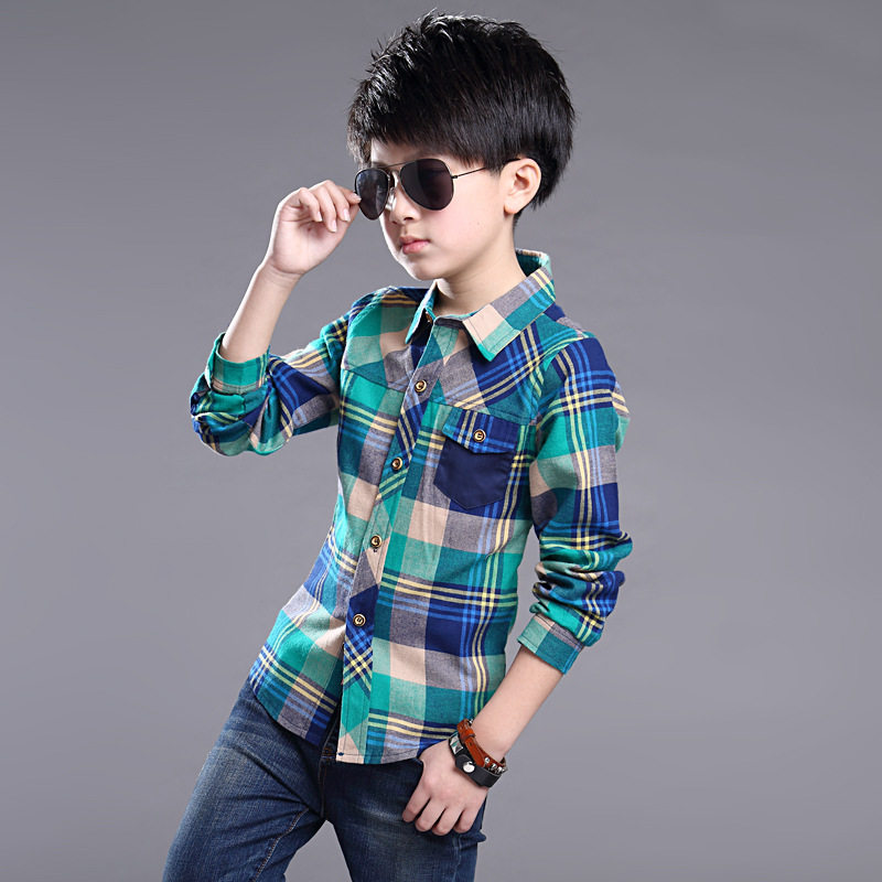 Boy's 5 middle child shirt Long sleeves 7 Spring autumn 8 Pure cotton Korean version 9 Spring 10 Big Boy 15 Boy 12 Children inch Shirt