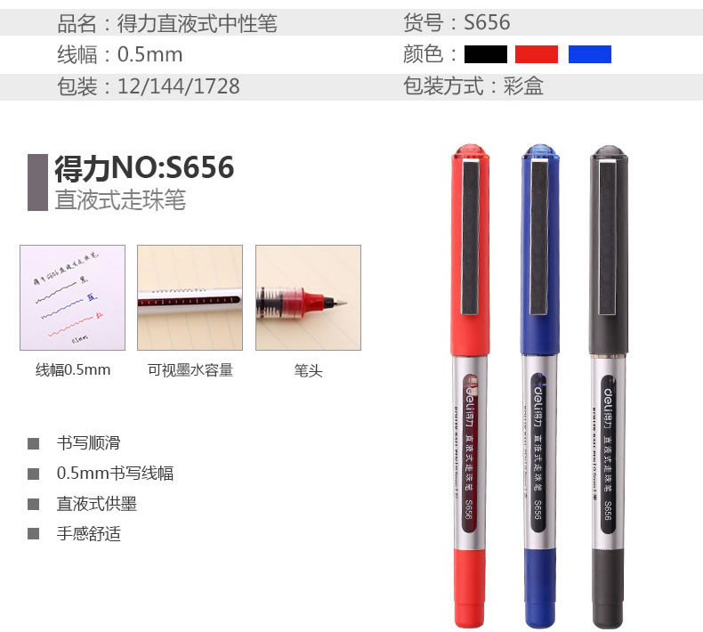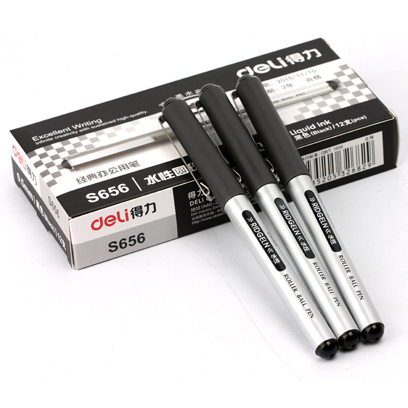 Able S656 Straight Liquid Type Medium Pen Water-based Pen Ink Pen Signature Pen Black Pen Business Pen Exam Pen 12