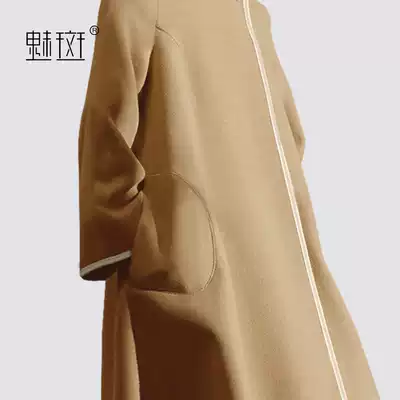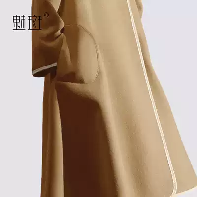 Charm spotted round neck wool coat women's medium and long version of the fashion loose double-sided wool coat