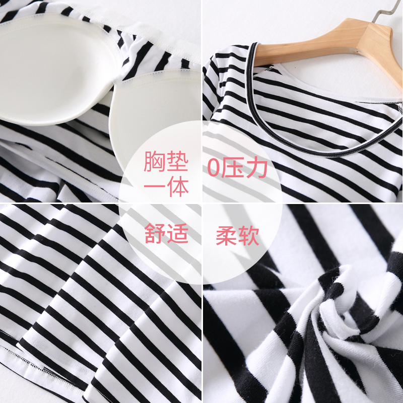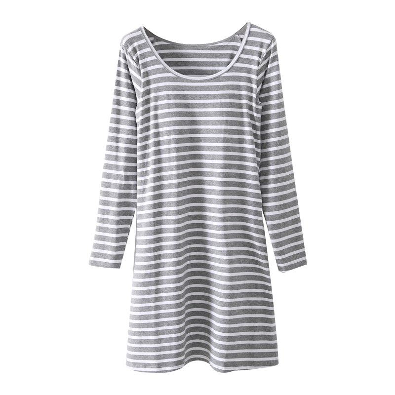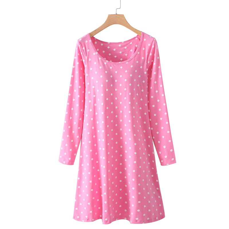 Women's autumn and winter pure cotton pajamas with chest pads long-sleeved loungewear cup one nightdress without bra mid-length dress