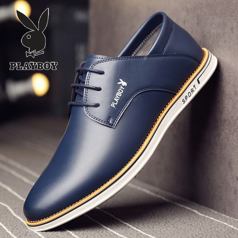 Playboy men's shoes spring leather casual punching hollow breathable new trendy men's leather shoes lace up