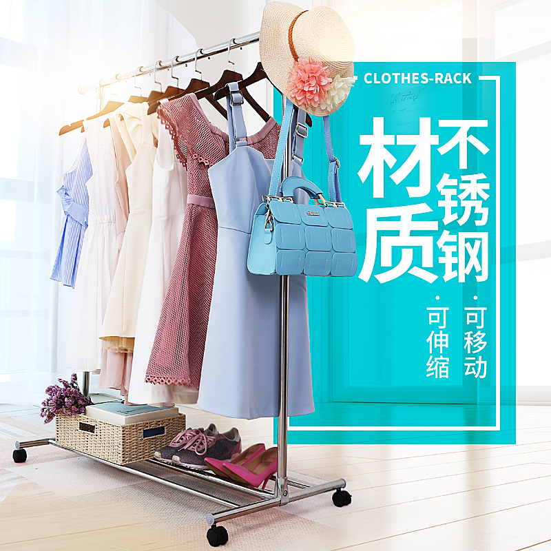 Indoor hanging rack floor single rod stainless steel drying frame sunbathing frame simple cooling rod bedroom hanging clothes rack