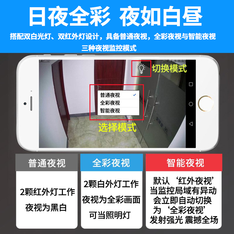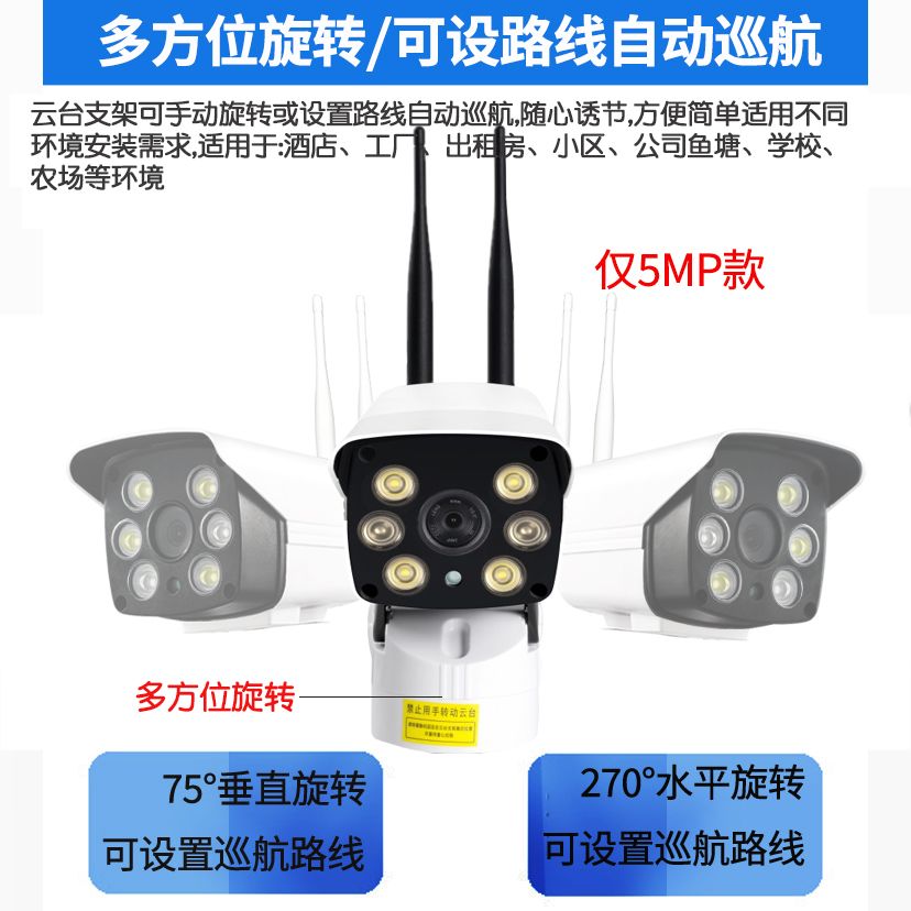 Surveillance camera wireless home remote connected mobile phone outdoor night vision network HD monitor rotating set