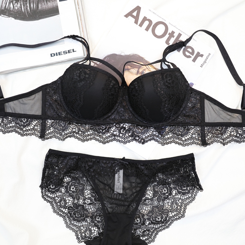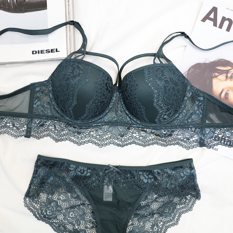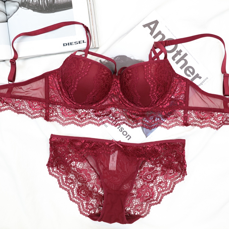 New girl's bra small breasts in Europe and America Adjusted Red Underwear Mid Thick Sexy Lace Little Cute Suit