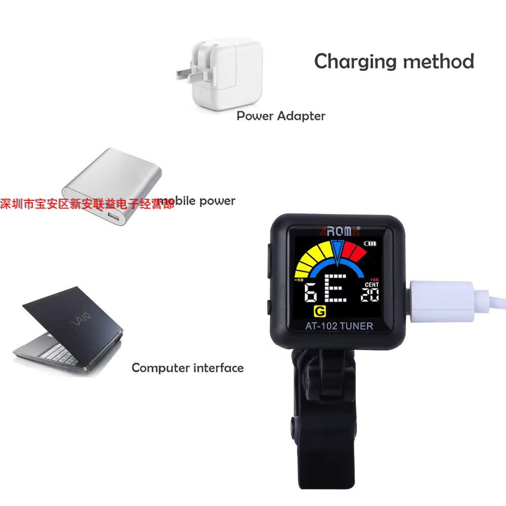 AROMA AT-102 Chargeable clamp sounding device guitar violin Ukriri sound tuner
