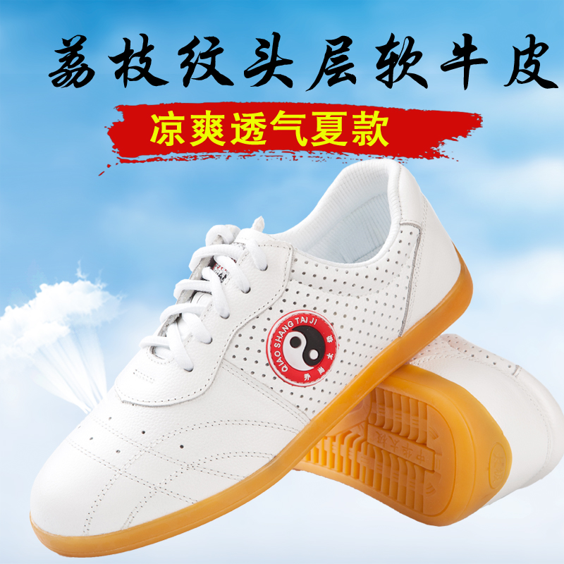 Tai chi shoes women's soft cowhide beef tendon bottom layer leather tai chi shoes kung fu martial arts training shoes men's spring autumn summer