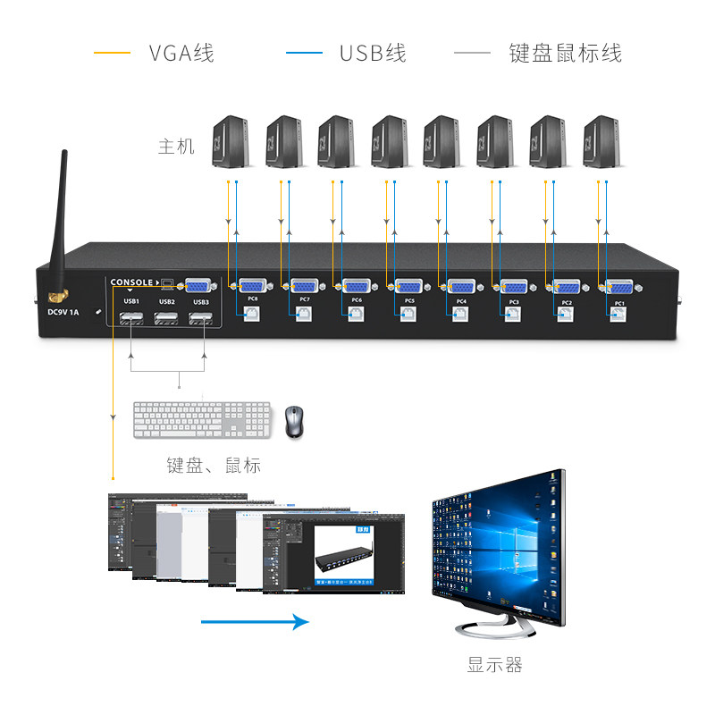 U-link KVM switch 8 ports VGA switch 8 in 1 out computer monitor Mouse key sharer with remote control