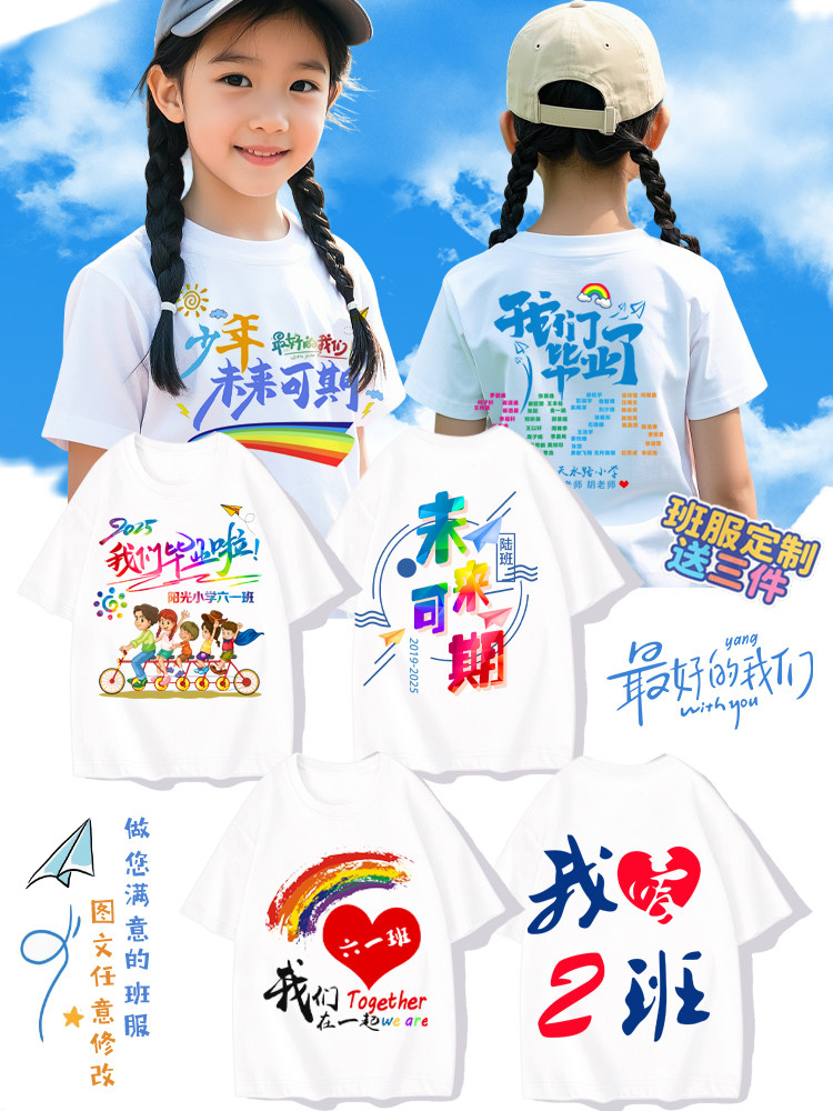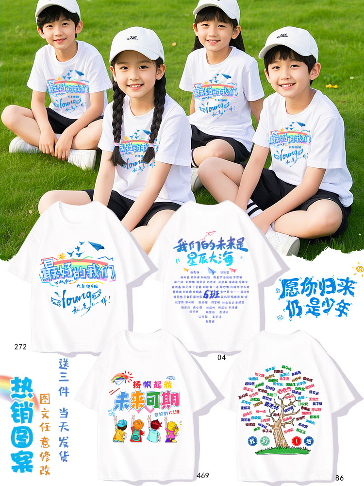Primary school students' graduation class uniform customized T-shirt short-sleeved pure cotton kindergarten sixth grade sports meeting children's clothing cultural shirt