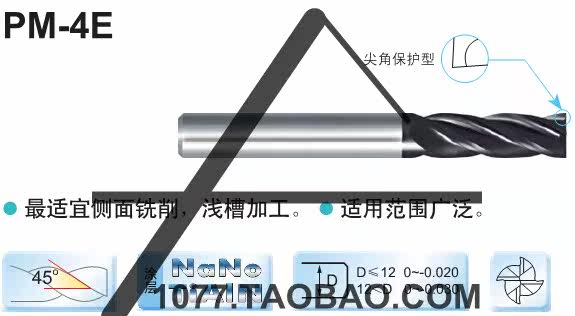 Zhuzhou Diamond 55 Degree Solid Carbide End Mill 4 Flutes Straight Shank Flat Head PM-4E Series