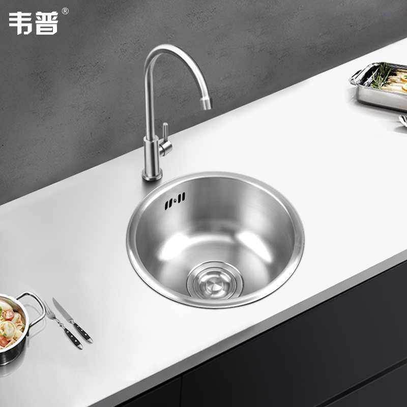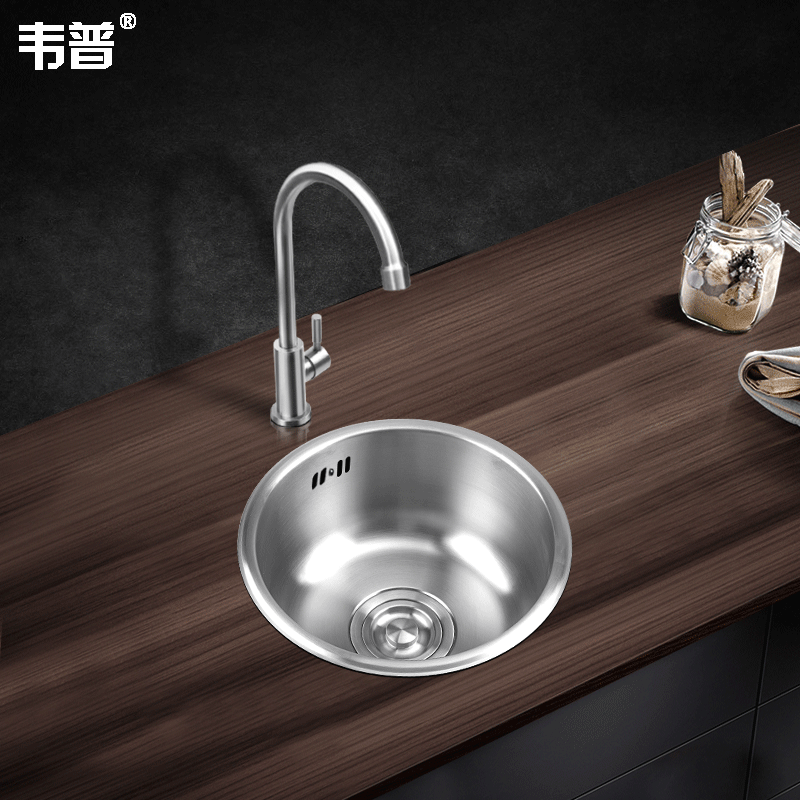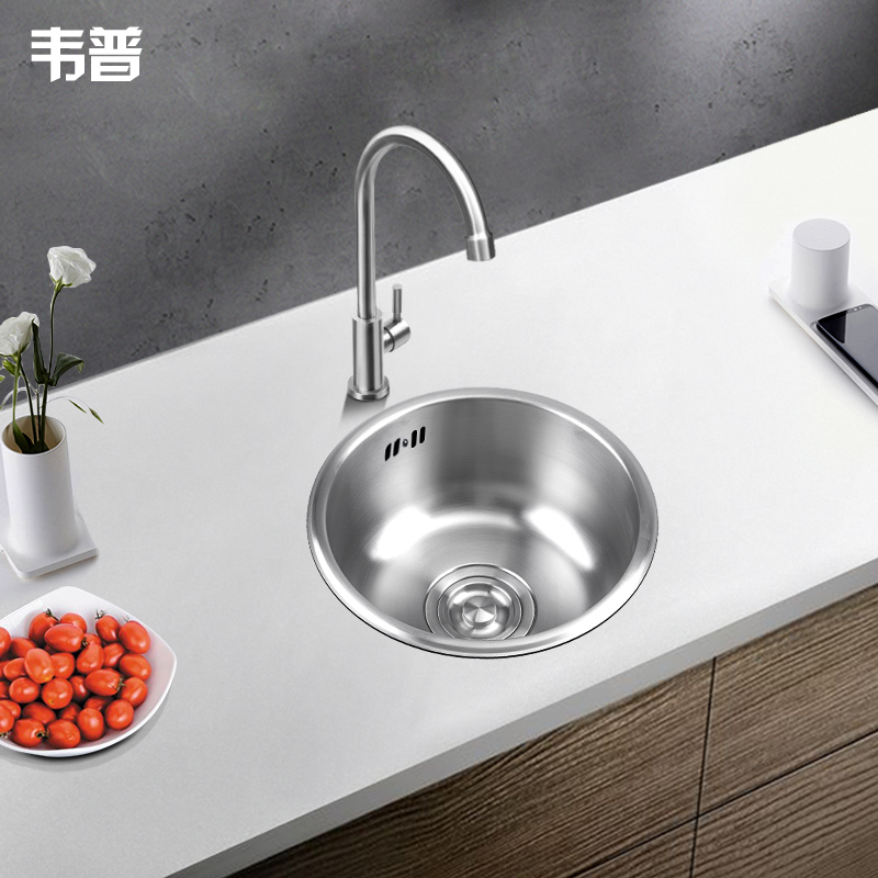 Weipu 304 stainless steel bar round small sink single-slot washbasin balcony kitchen mini sink washbasin